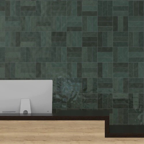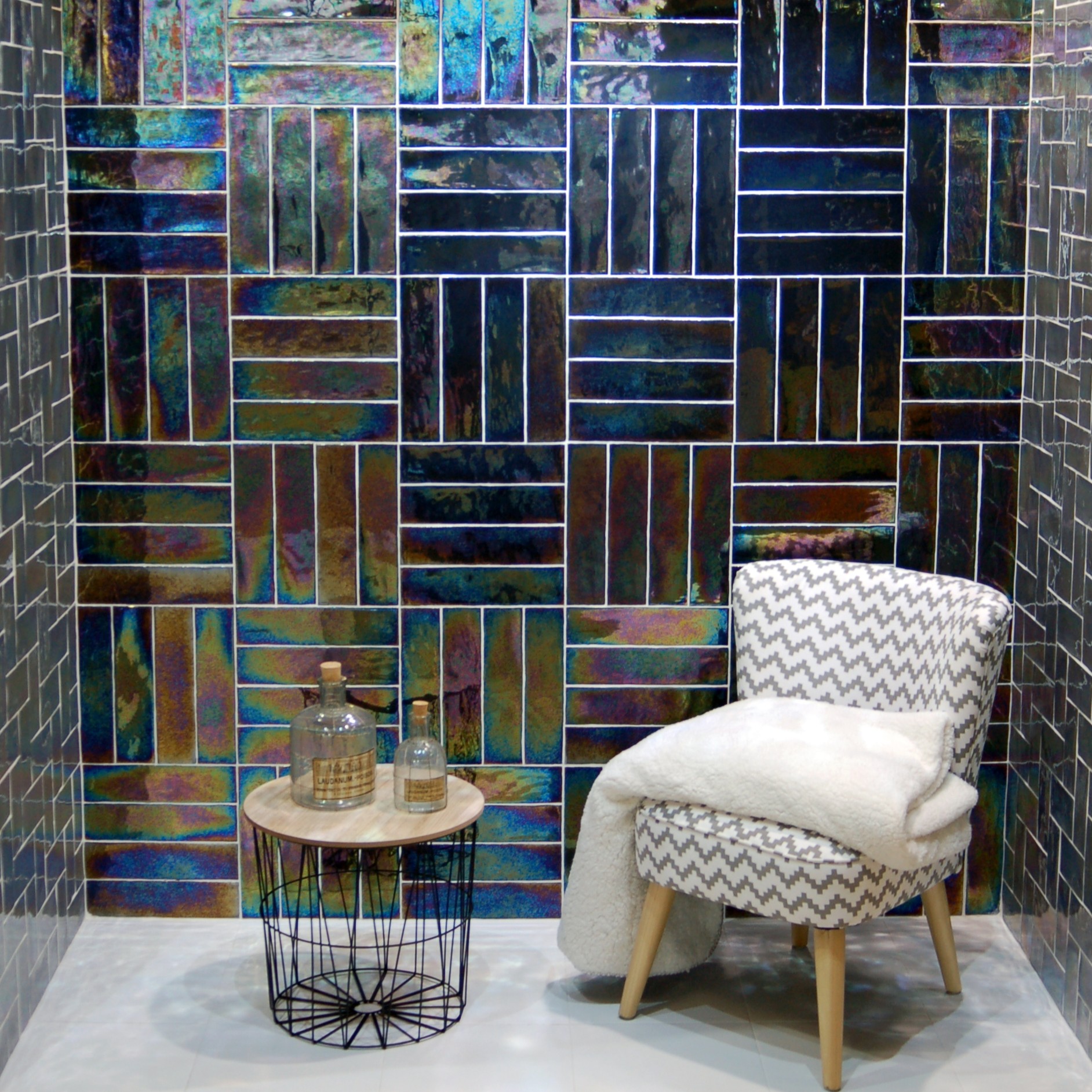 Luxo ceramic tile features the beauty of a unique metallic mirror effect. The alternating vertical and horizontal orientations of the Basketweave pattern allow for this tile's beautiful shimmer to shine from any angle, creating a real wow factor.