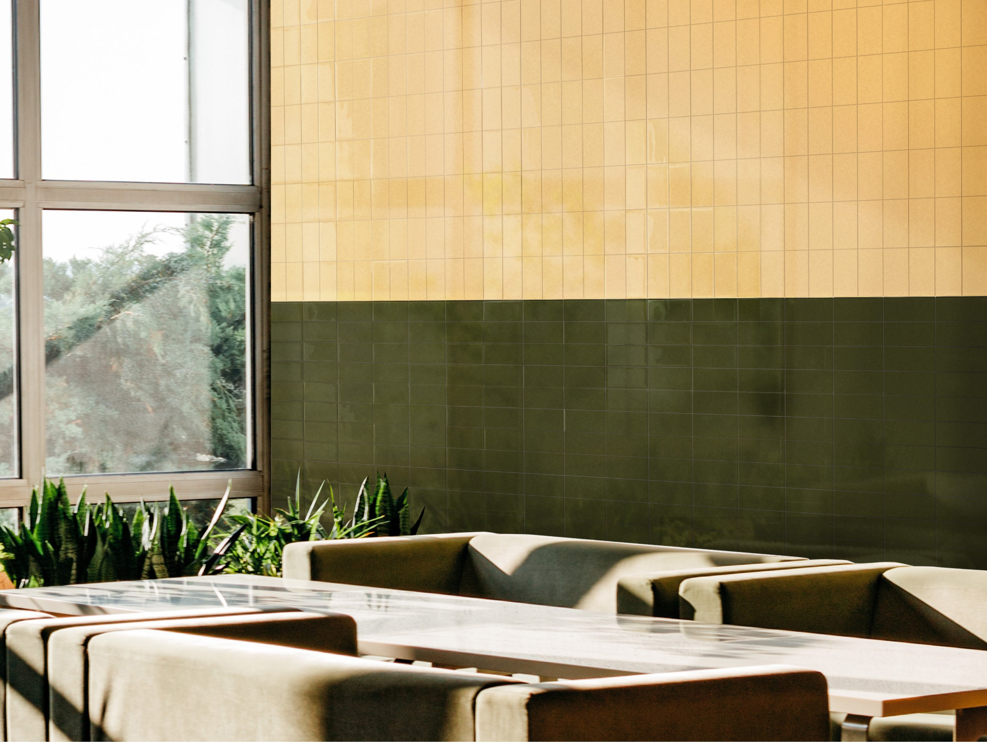 Designed in collaboration with Gensler, our Back to Basics collection features 3”x 6” glossy tiles in 60 unique colors. This collection provides a wide spectrum of colors, including, "go-to" colors such as white, gray, black, yellow, green, blue and red; more nuanced colorways that are muted, earthy and subdued; as well as pastels and vibrant pops of color. This perfect palette of colors is sure to inspire truly unique and one-of-a-kind designs.