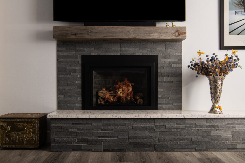 There’s nothing quite like gathering around a fireplace to share stories and laughter. With its stacked stone appearance and rich texture, Connect™ glazed porcelain tile brings natural warmth and balance to encourage cozy moments with friends. Photo Credit: @LeighAnnRowe