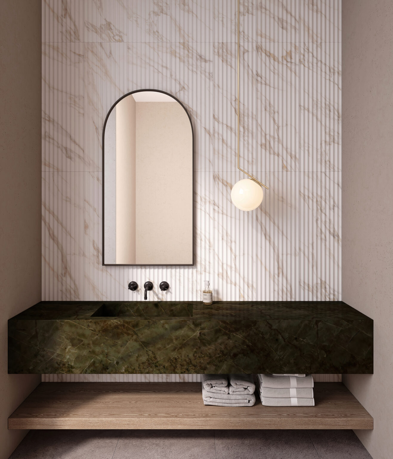 Create floor-to-ceiling drama with large-format tile, like the natural stone-inspired designs from Expanse™ – Enhance™ by Emser Tile. These striking surfaces elevate any space, providing a stunning setting for intimate evenings.