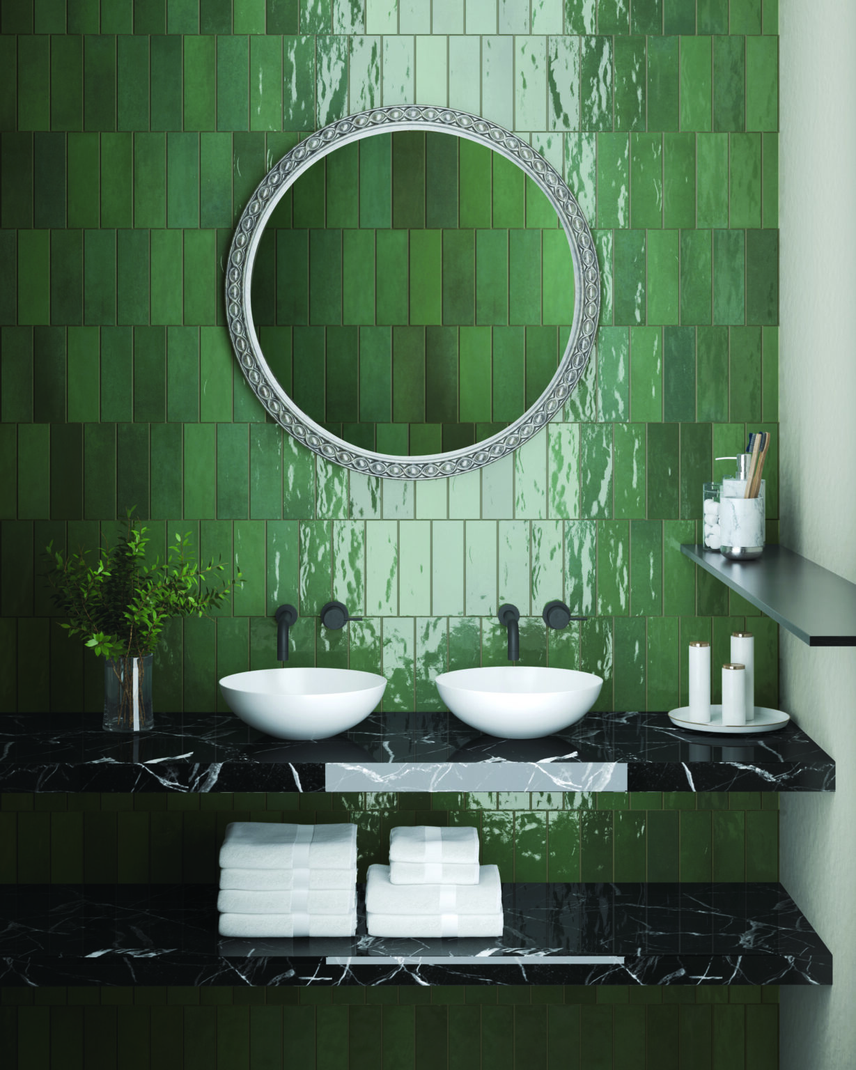 As biophilic design continues to play a significant role in our spaces, tiles in striking greens add lush visuals to surfaces, coupled with easy care and maintenance, already inherent in the material.